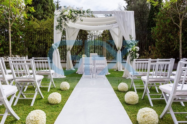 دانلود عکس استوک مسیر عروسی و دکوراسیون جشن عروسی در طبیعت باغ