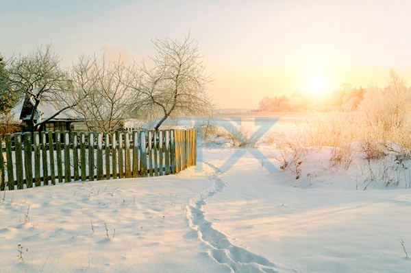 دانلود عکس استوک طلوع خورشید در منظره برفی با کیفیت بالا