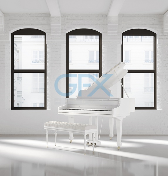 دانلود عکس استوک نمای داخلی خانه سفید با پیانو سفید