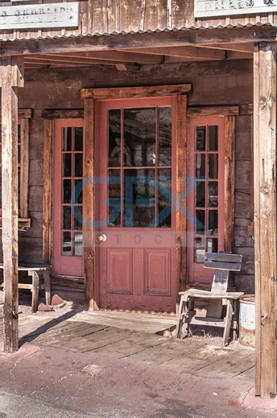 دانلود عکس استوک درب سالن به سبک غربی در شهر متروکه و قدیمی