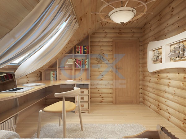 دانلود عکس استوک نمای داخلی اتاق با میز و تخت چوبی به سبک دریایی