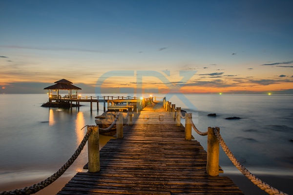 دانلود عکس زیبای اسکله چوبی رمانتیک هنگام غروب آفتاب با کیفیت عالی
