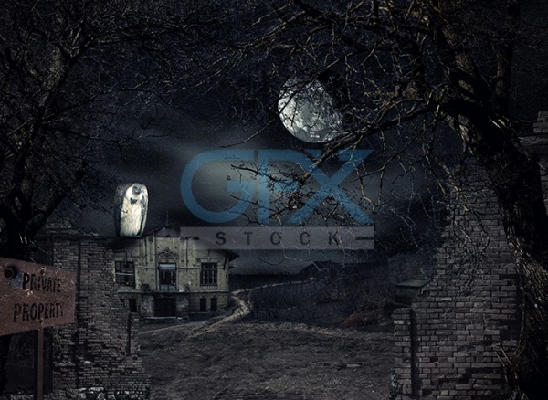 دانلود عکس نمای بیرونی خانه قدیمی و ترسناک در شب با کیفیت عالی