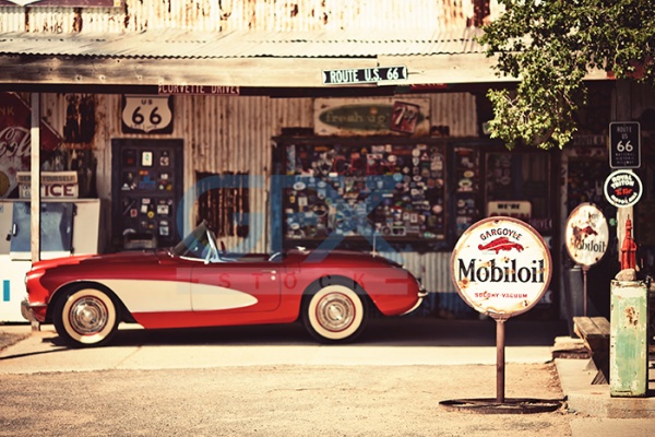 دانلود عکس ماشین قرمز قدیمی جلو مغاره