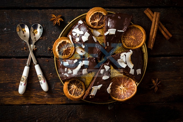 دانلود عکس زیبای استوک از کیک خوشمزه شکلاتی با دکور و میز زیبای چوبی