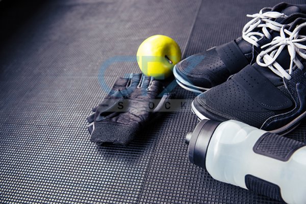 دانلود عکس زیبای استوک ست وسایل ورزشی شامل کفش-دستکش و قمقمه