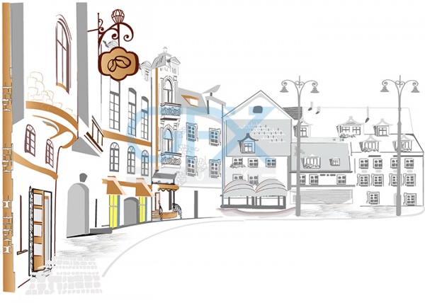 دانلود وکتور طراحی ساده نمای ساختمان در کوچه با کیفیت بالا
