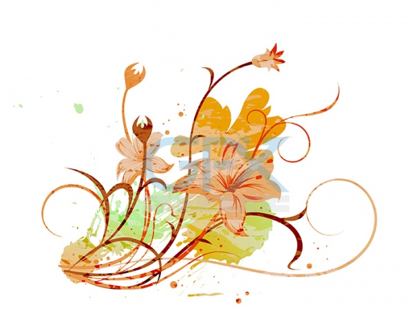 دانلود بک گراند زیبای وکتور-گل و بوته با طرح آب رنگی